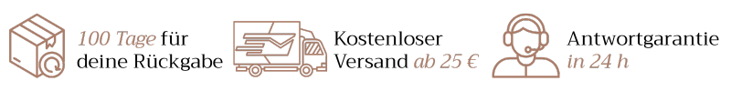 - Rückgabe oder Umtausch innerhalb von 100 Tagen nach Erhalt möglich.